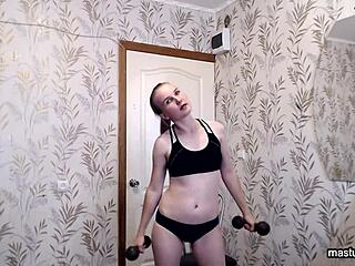 post-workout fingers slip into my soaked panties as flexible gymnast