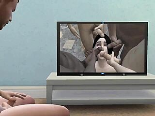 I join rough blowbang while boyfriend watches Sims