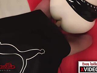 Long black latex glove femdom teases pet