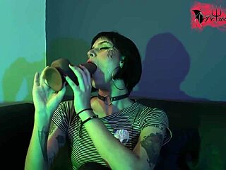 it's time to finish painting the little 18+ grey alien using the dildo in this art business