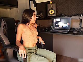 brunette takes blowjob challenge with big cock deepthroat