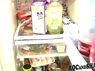 Black roommate fucked hard in kitchen with tight pussy creampie.