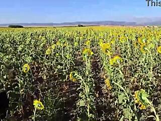 brazilian damiana safada flashes curvy tits ass public sunflower field europe ep6