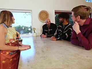 Heart pounding as bisexual ebony thieves seduce homeowner with interracial lesbian strapon ass worship and squirting
