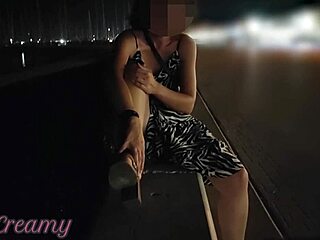 Misscreamy flashes wet pussy publicly as hot teacher fingered outdoors