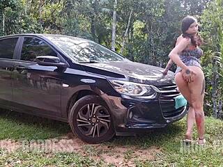 Indian mommy cheats with father-in-law for hardcore car sex in jungle