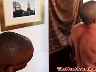 Buff black hunk receives blowjob and penetrates guy's tight ass outdoors
