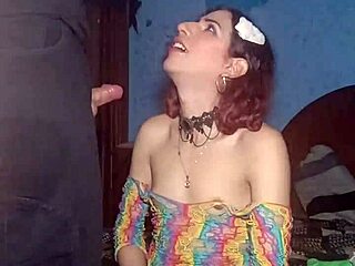 sexy goth shemale deepthroats cock like a pro in crossdress
