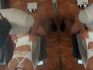 mature lady slowly strips latex lingerie, teasing big nipples before vibrator play