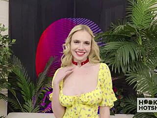 Blonde Curvy Femdom Makes Slave Lick Shaved Pussy.
