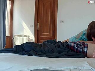 義兄がヒジャブの若い女性の脚を広げて、中出しされた毛むくじゃらのマンコを激しく犯す