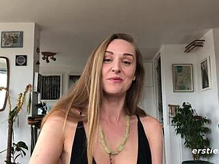 blonde hottie teases in lingerie, fingers her shaved pussy real good