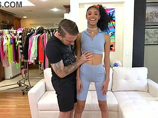 Petite Black Babe's Hairy Pussy Stretched by European BWC in Raw Casting Fuck