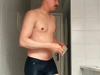 Sexy Guy Boldly Shaves Legs In Black Beach Shorts