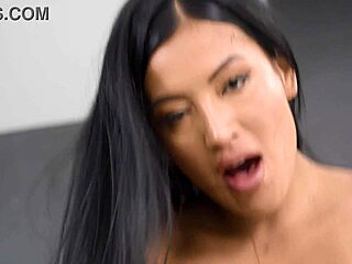 Curvy brunette contrasts big tits with cumshot in mouth during casting