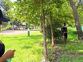 日差しの中のクイックセックスでカーブィーブラネット、巨大腫れ乳、ビッグチンポ、無毛マンコに中出し😍