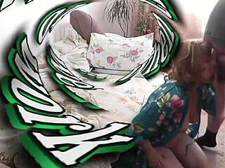 Gevangen deze busty blonde met enorme natuurtieten die in woonkamer wordt geramd.
