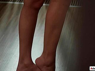 housewife receives fan at home fucks barefoot submissive with feet fetish close up