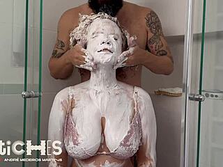 brazilian brunette deepthroats husband's monster cock balls-deep dirty