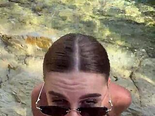 Plavuša daje deepthroat pušenje sa spermom na sisama i licu