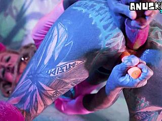Tattooed Goth Punk's Pierced Nipples Thrill in Solo Anal Toy DP