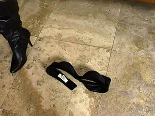 Mature Blonde Teases Hairy Pussy Dildo in Stockings Heels