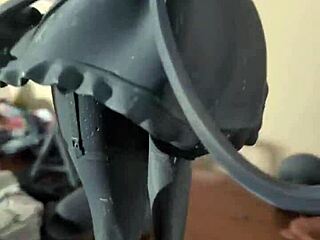 Anime bunny girl Helly Rite stuffs anal dildo in doggystyle position!