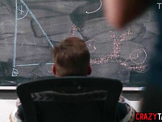 Какво става, когато възбудена учителка хваща колега да мастурбира в клас и следва твърд групов секс?