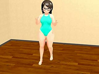 Kyo dances with curvy plump animation girl.