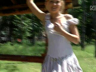 young brunette teen interacts with older gentleman in a casual conversation about blowjob
