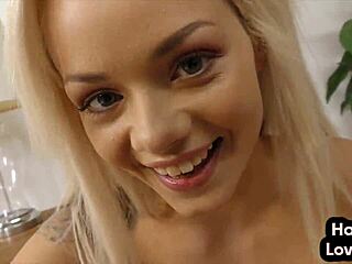 Gorgeous blonde fucks, sucks, and gets massive facial cumshot close up