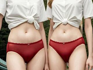 Cute lesbians teasing in their underwear