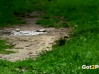 Hot brunette susan ayn relieves piss desperation outdoors
