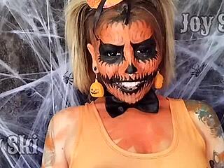 brazilian pierced nipple nerds fuck pumpkin for halloween fetish fun