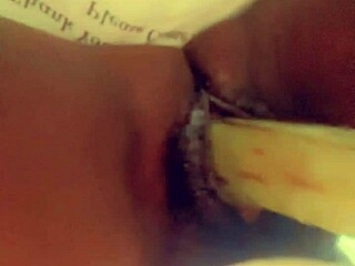 An ebony woman creates a veggie dildo for her solo pussy masturbation fetish session.