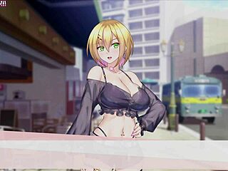hot blonde emma with big tits in stockings hints at sensual no hands blowjob and handjob in 3d hentai animation