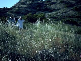 blonde exhibitionist licks pussy sore on outdoor lesbian train