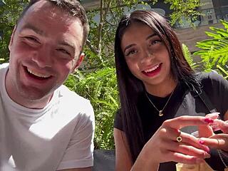 Thick 19yo Latina Naty Endures Rough Threesome With Blowjob and Ass Fucking