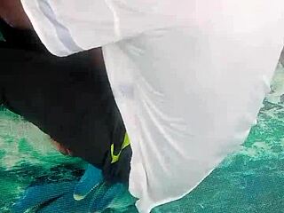 Peaky brownies and muscular gym partner ravage each other hard on sofa in homemade frenzy