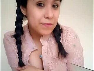 Nipple vibrator buzzing on her big natural tits while she masturbates
