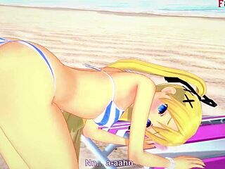 Marie Rose en Bikini Mamando en Playa Hentai Anime 3D Fantasía