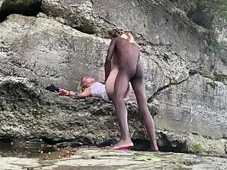 Madrastra se desnuda para su hijastro en caminata por la playa. ¡Lo chupa con una habilidad salvaje!