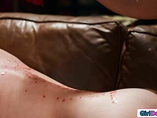 Busty redhead gf licks petite milf's shaved pussy wax tease