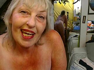 Kiireinen mummo kiusoittelee pitkien jalkojen laskennalla
