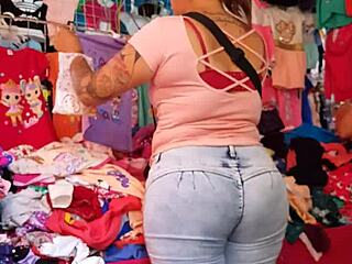Curvy BBW beauty farts seductively in tight blue jeans showing off huge ass