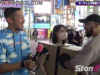 Japanese babe with huge tits teases in Shinjuku.