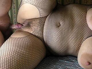 Mature cougar takes hard anal pounding from lover with petite body spread