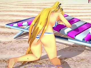 Marie Rose Bikini Sucking on the Beach in 3D Cartoon Anime Fantasy Hentai