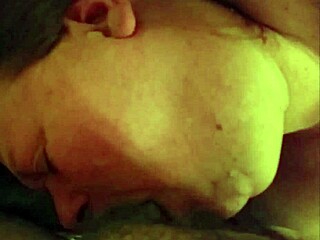 Milf BBW couple enjoys big cock blowjob at home