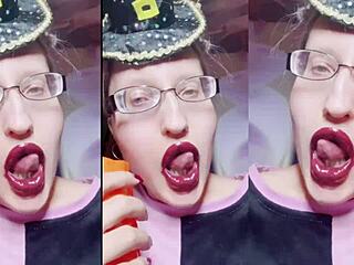Nerd girlfriend with glasses gives footjob on pussy while friend watches panties